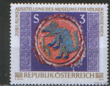 Полная серия из 1 марки 1978г. Австрия "Юбилейная выставка Этнологического музея в Вене. Ацтекский щит из перьев с изображением койота" MNH