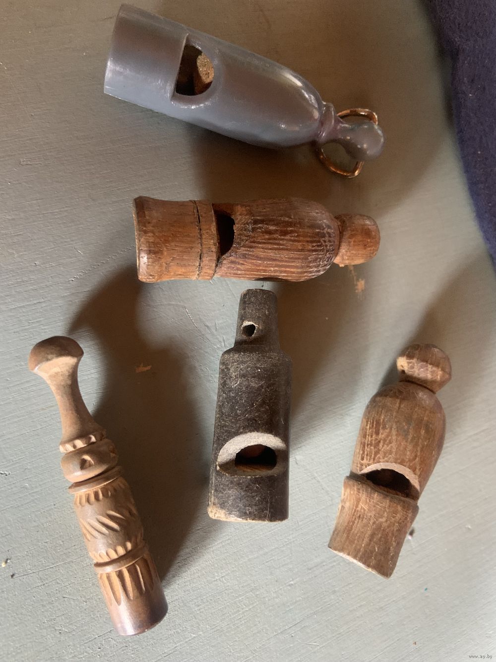 | Со следами уже древнего хрома! Спортивный или морской-с очень резким звучанием-внутри шарик! Размеры см. по коробке спичек! | |