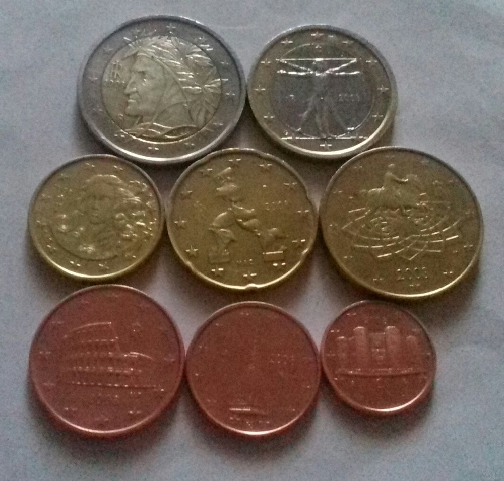 Полный ГОДОВОЙ набор евро монет Италия 2008 г. (1, 2, 5, 10, 20, 50 евроцентов, 1, 2 евро)