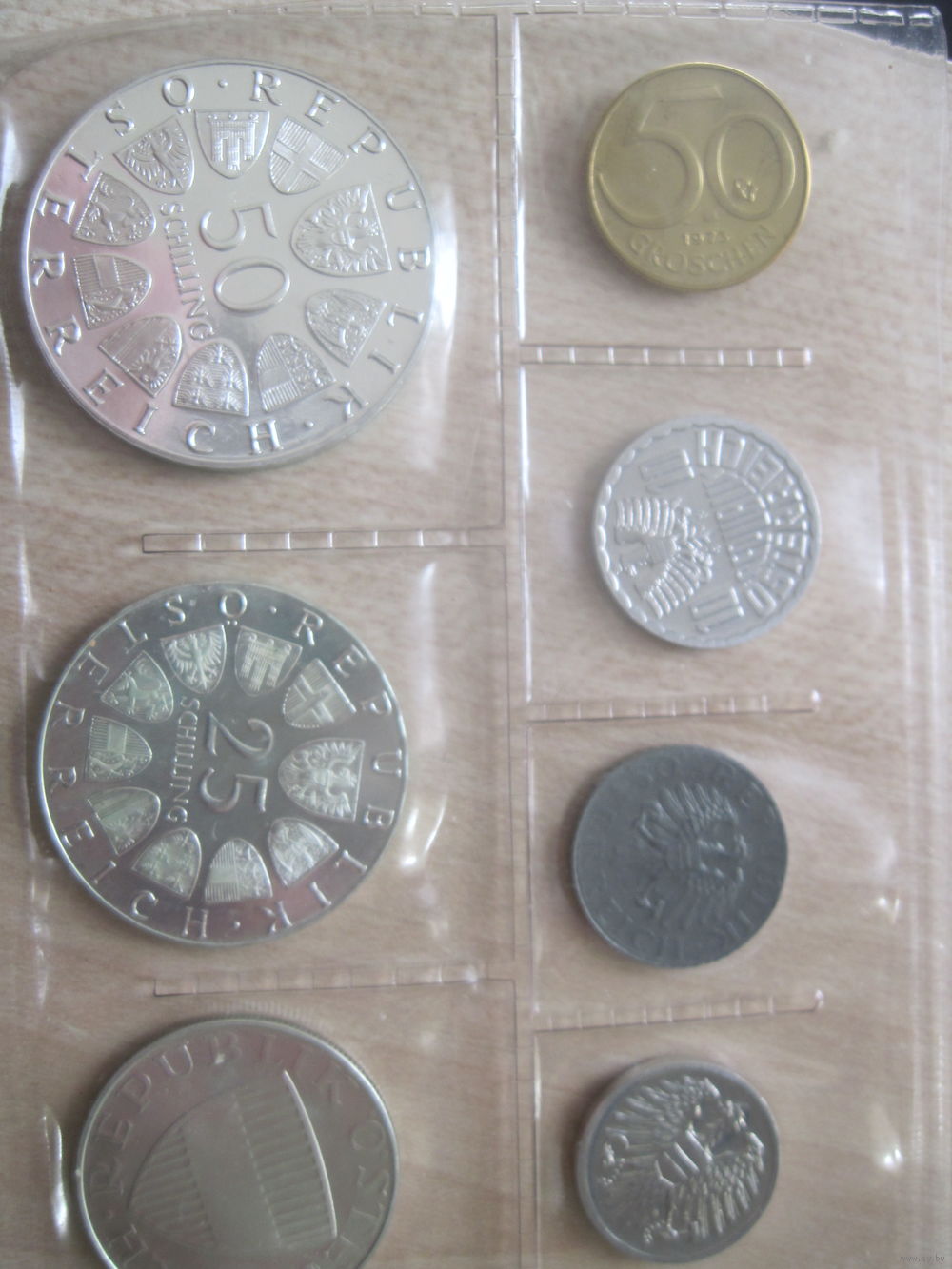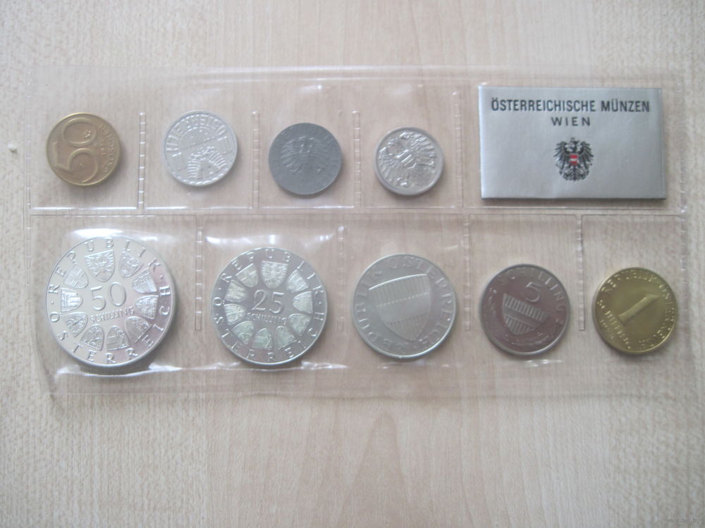 Полный пруф-сет монет Австрии 1973 года , включая серебрянные