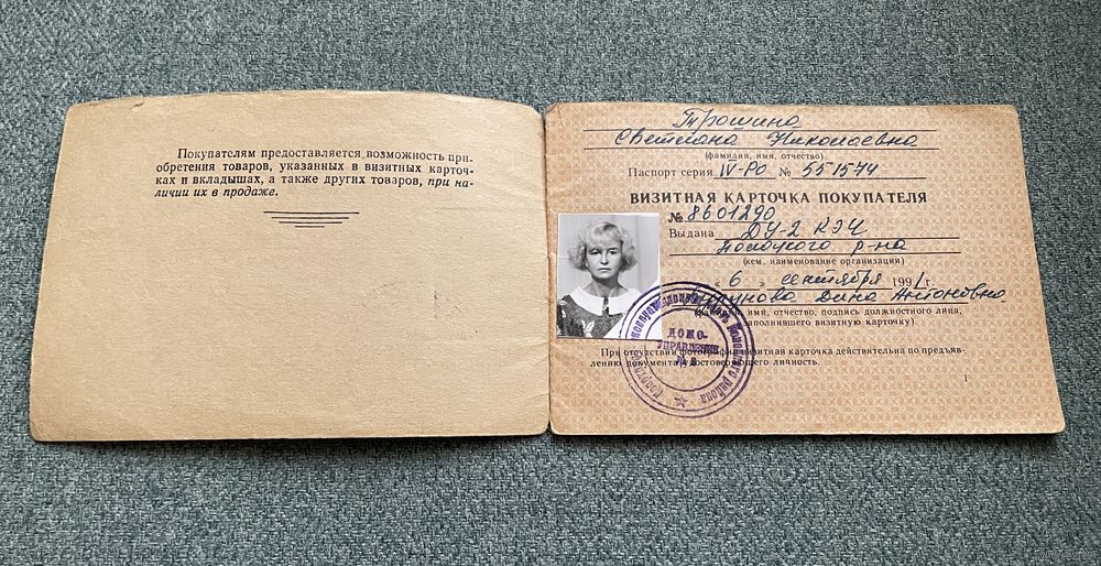 Полоцк БССР Визитная карточка покупателя (женский ассортимент) 06.09.1991 год / с 1 РУБЛЯ