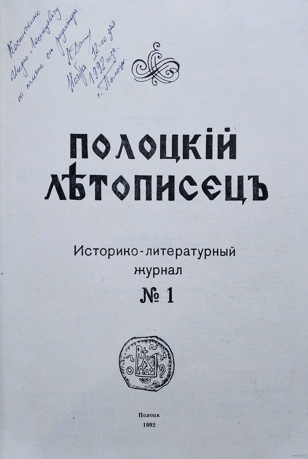 Полоцкий летописец: историко-литературный журнал. N 1 1992 г. Автограф редактора. Полоцк : Диана, 120 с.