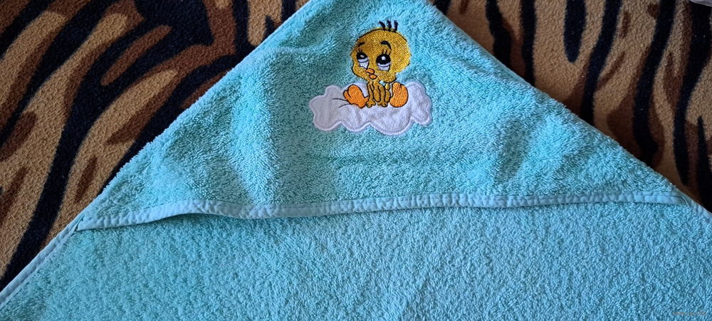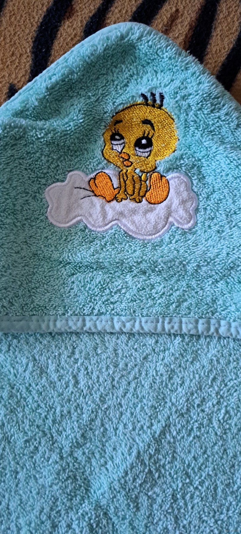 Полотенце для новорожденного с капюшоном, б.у в идеальном состоянии, цвет бирюзовый, размер 90-90см, 100% хлопок, стирать при 30С, производство Турция.