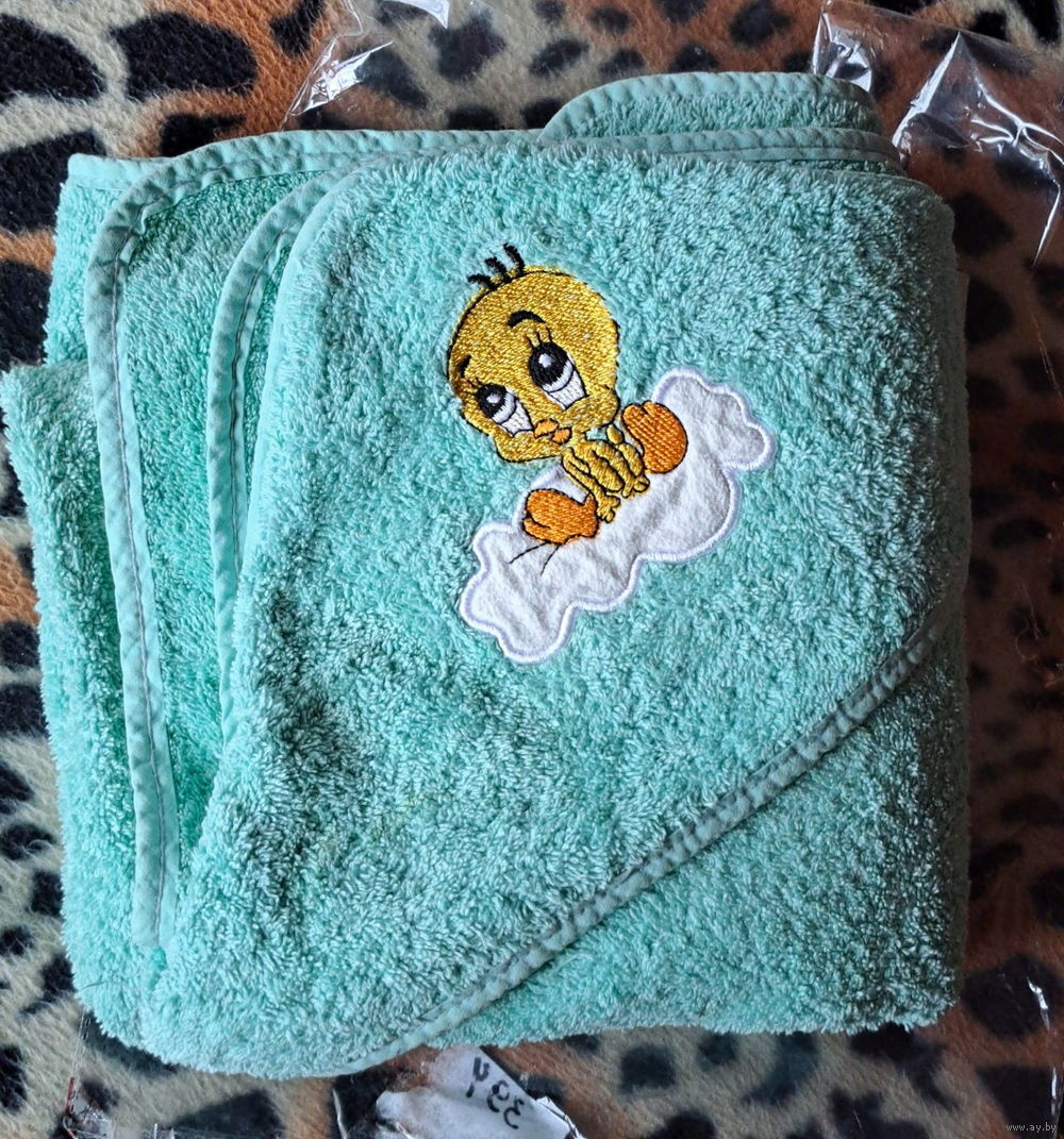 Полотенце для новорожденного с капюшоном, б.у в идеальном состоянии, цвет бирюзовый, размер 90-90см, 100% хлопок, стирать при 30С, производство Турция.