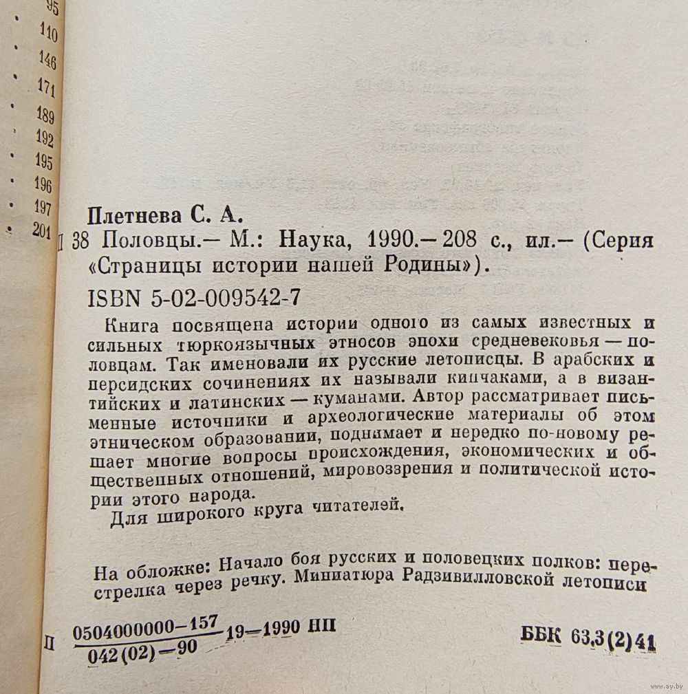 Книга посвящена истории одного из самых известных и сильных тюркоязычных этносов эпохи средневековья — половцам. Так именовали их русские летописцы. В арабских и персидских сочинениях их называли кипчаками, а в византийских и латинских — куманами. Автор рассматривает письменные источники и археологические материалы об этом этническом образовании, поднимает и нередко по-новому решает многие вопросы происхождения, экономических и общественных отношений, мировоззрения и политической истории этого народа