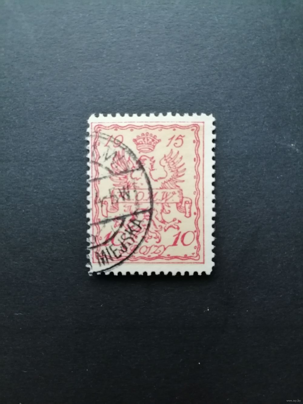 Польша 1915 Марка из серии Варшавская городская почта "Геральдические фигуры" (гашение с наклейкой) Mi.2А каталог 5.00 евро