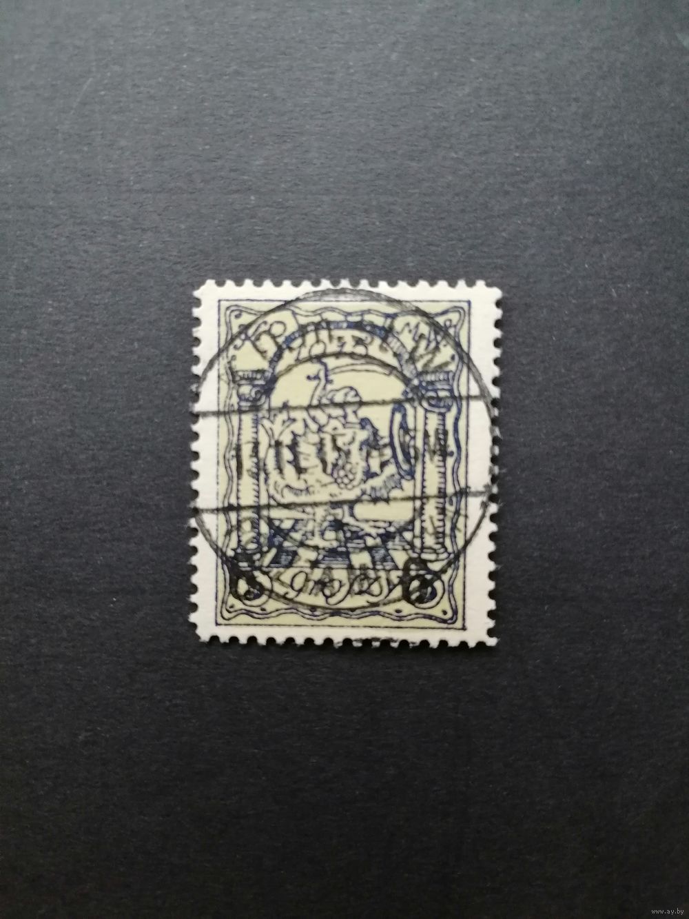 Польша 1915 Марка Mi.1 Варшавская городская почта с надпечаткой "6 gr" выпуска октябрь-ноябрь из серии "Геральдические фигуры" (гашение с наклейкой) Mi.6А II каталог 20.00 евро