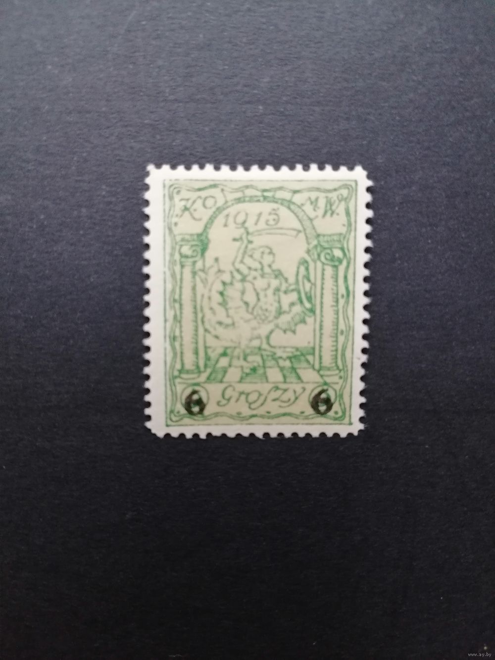 Польша 1915 Марки Mi.2 Варшавская городская почта с надпечатками "6 gr" выпуска ноябрь-декабрь из серии "Геральдические фигуры" (чистая с наклейкой) Mi.8А каталог 1.20 евро