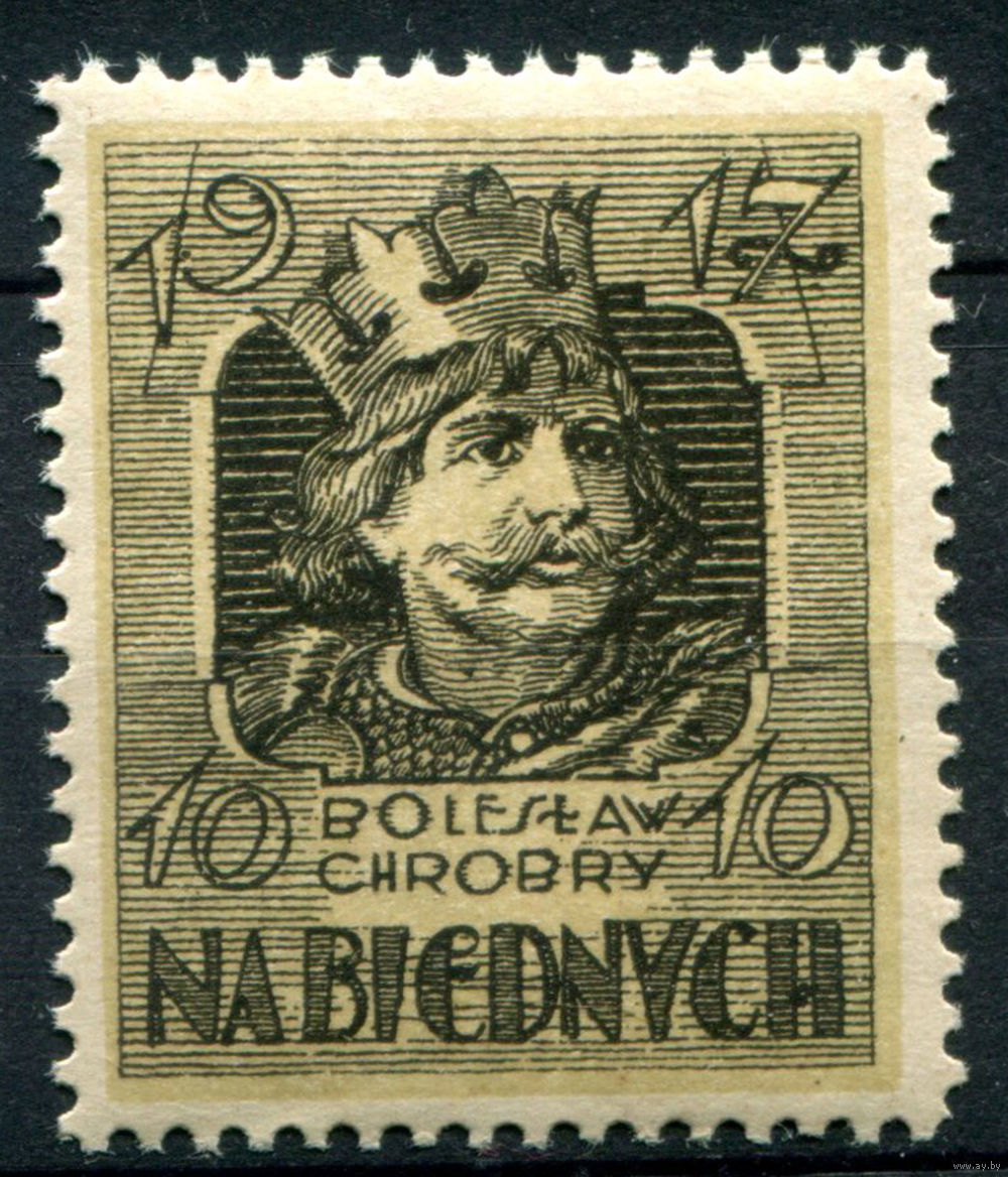 Польша - 1917г. - благотворительный выпуск, Болеслав Храбрый, 10 - 1 марка - MNH. #O-W-102-B-1
