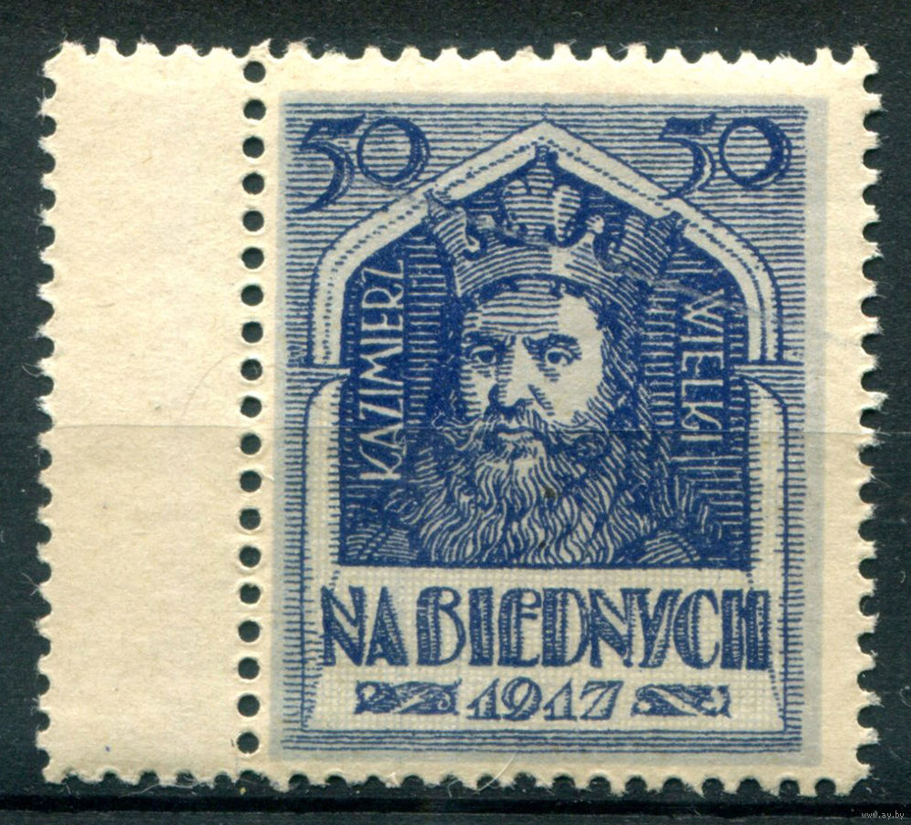 Польша - 1917г. - благотворительный выпуск, Казимир Великий, 50 - 1 марка - MNH. #O-W-102-B-2