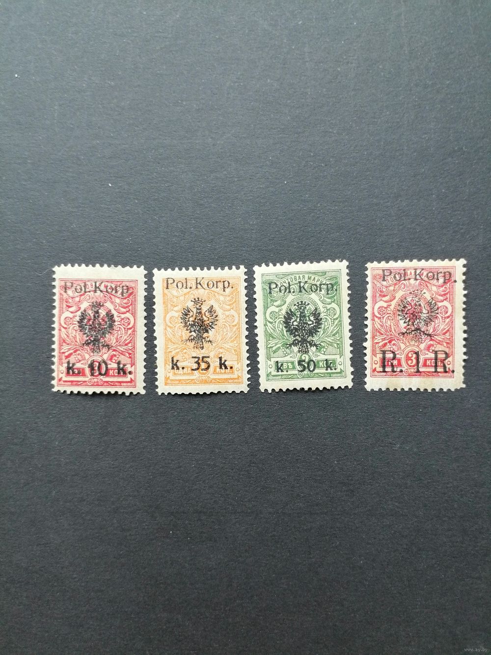 Польша 1918 Четыре марки Российской Империи с надпечаткой "Pol. Korp." и новыми номиналами как полная серия (чистые** возможно новодел) Mi.12А-15А каталог 180.00 евро