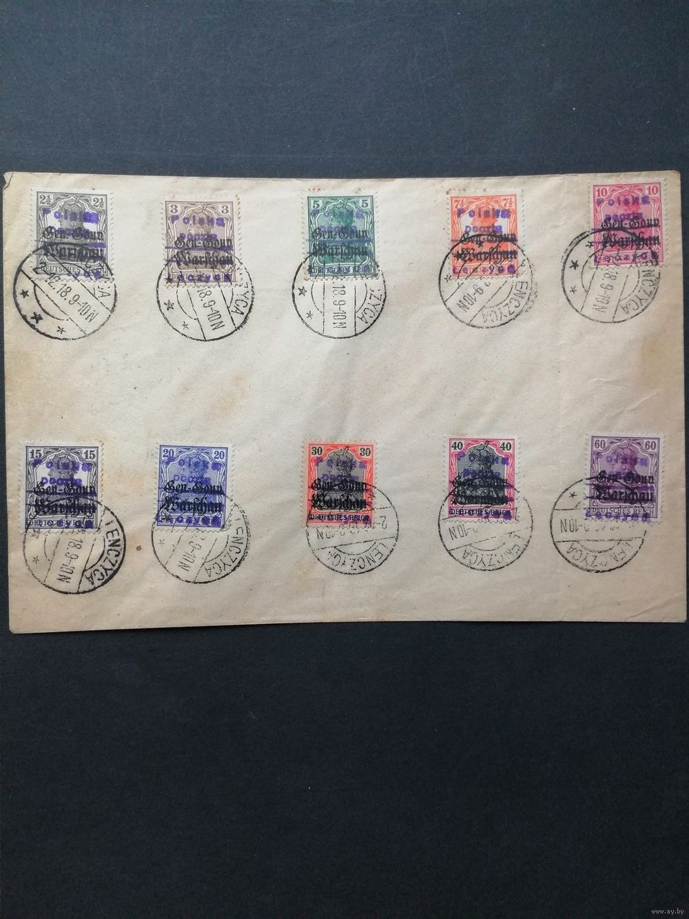 Польша 1918 Конверт с марками и надпечаткой "Polska Poczta Leczyca" оккупационной дирекции в Варшаве на марках Германии 1914/1918 годов выпуска Mi.6-10,12-16 (гашение LENCZYCA) каталог 25.00 евро