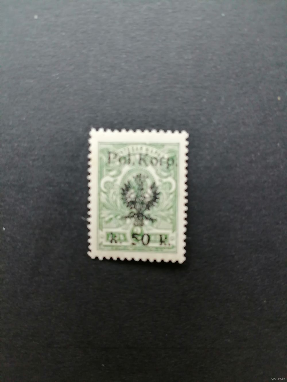 Польша 1918 Марка Российской Империи с надпечаткой "Pol. Korp." и новым номиналом (к 50 к) из серии (чистая** возможно новодел) Mi.14А каталог 5.00 евро