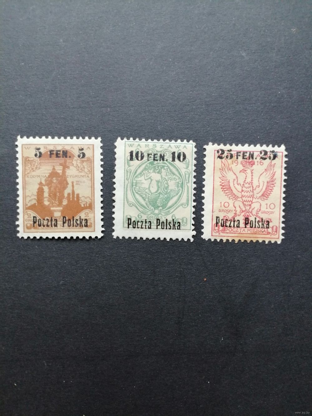 Польша 1918 Неполная серия марок с надпечаткой "Poczta Polska" с новым тарифом на марках 1916 года "Варшавская городская почта" (чистая* с наклейками) Mi.2-4 каталог 9.00 евро