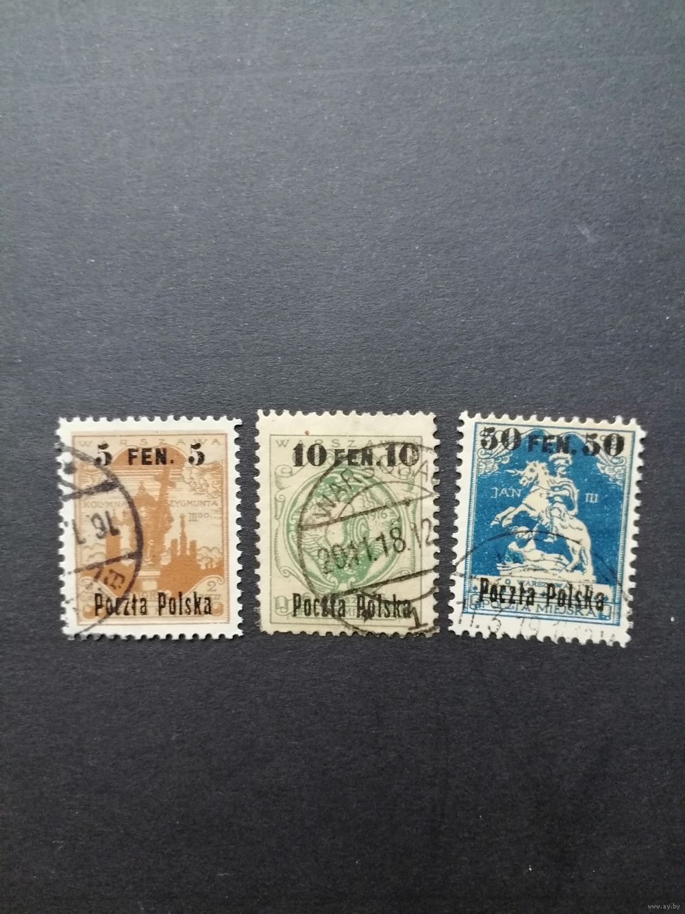 Польша 1918 Неполная серия марок с надпечаткой "Poczta Polska" с новым тарифом на марках 1916 года "Варшавская городская почта" (гашеные) Mi.2-3,5 каталог 7.00 евро