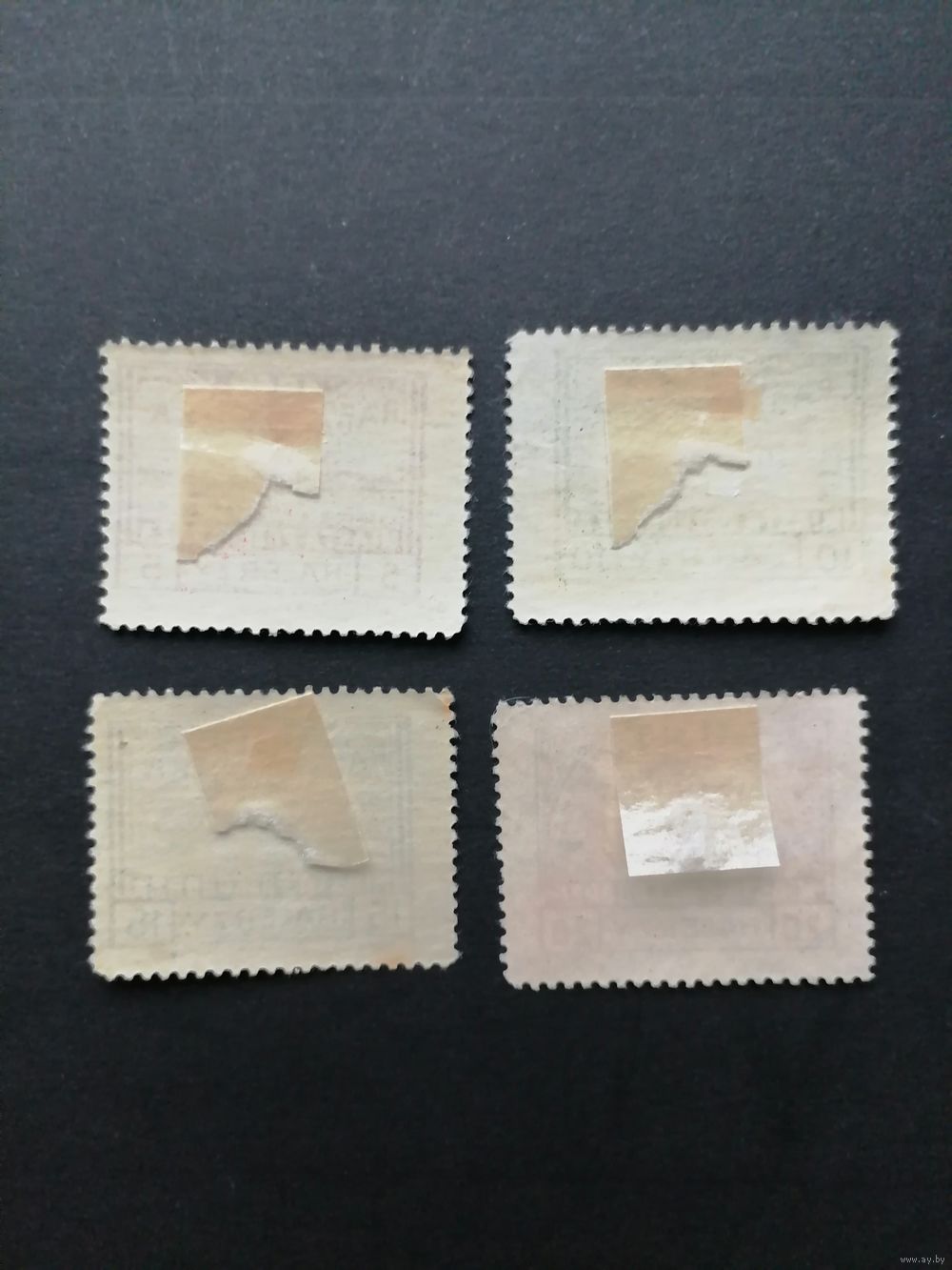 Польша 1918 Полная серия марок "Przedborz" выпуск 27.03.1918 перфорация 11 1/2 "Виды и гербы города в лучах солнца: RADA MIEJSKA" (чистые* с наклейками) Mi.11В-14В каталог 100.00 евро