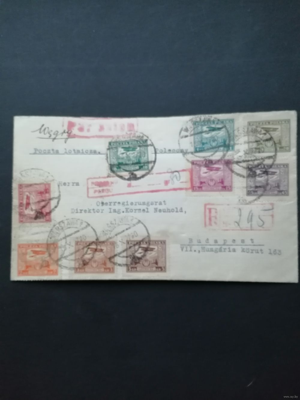 Польша 1925 Конверт с полной серией марок "Авиапочта" (гашение) Mi.224-232 каталог 36.00 евро
