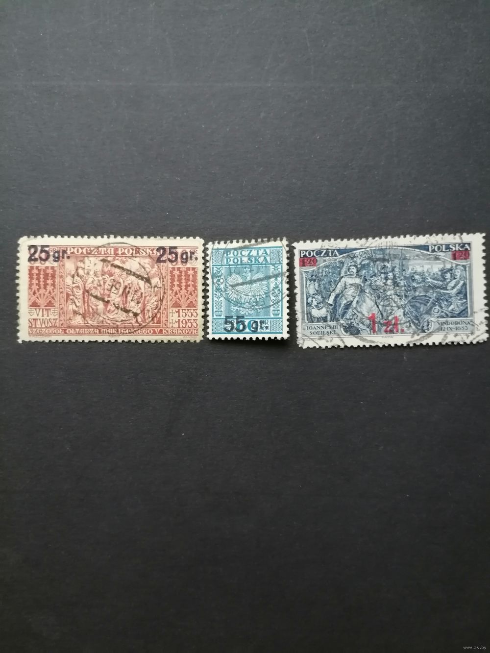 Польша 1934 Марки Mi.278,Mi.282-Mi.283 с надпечаткой нового номинала (гашение, одна с клеем две без клея, есть наклейки) Mi.291-293 каталог 8.50 евро