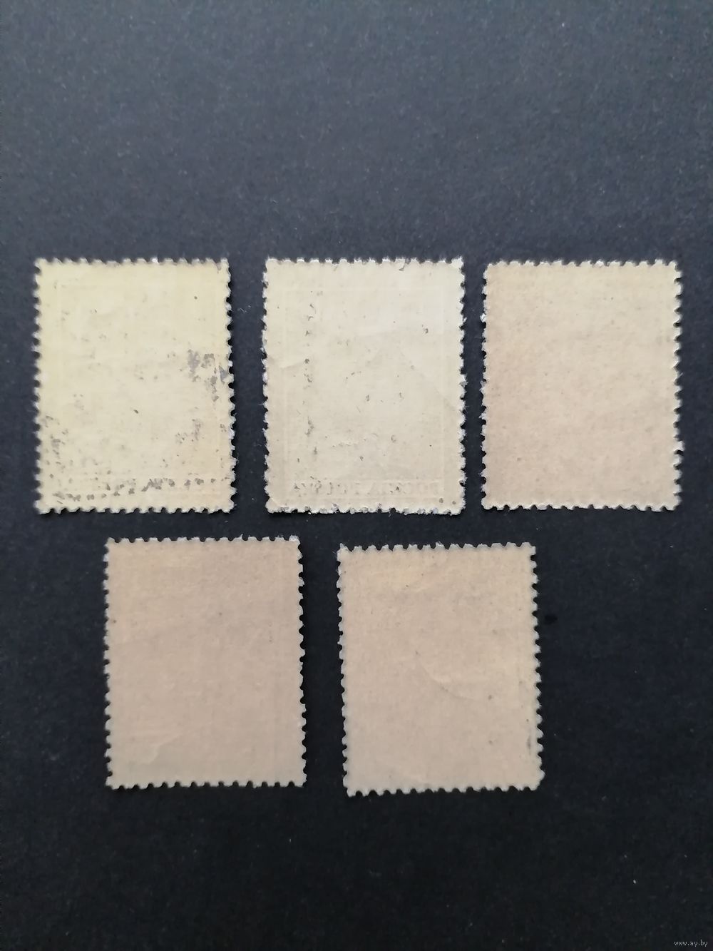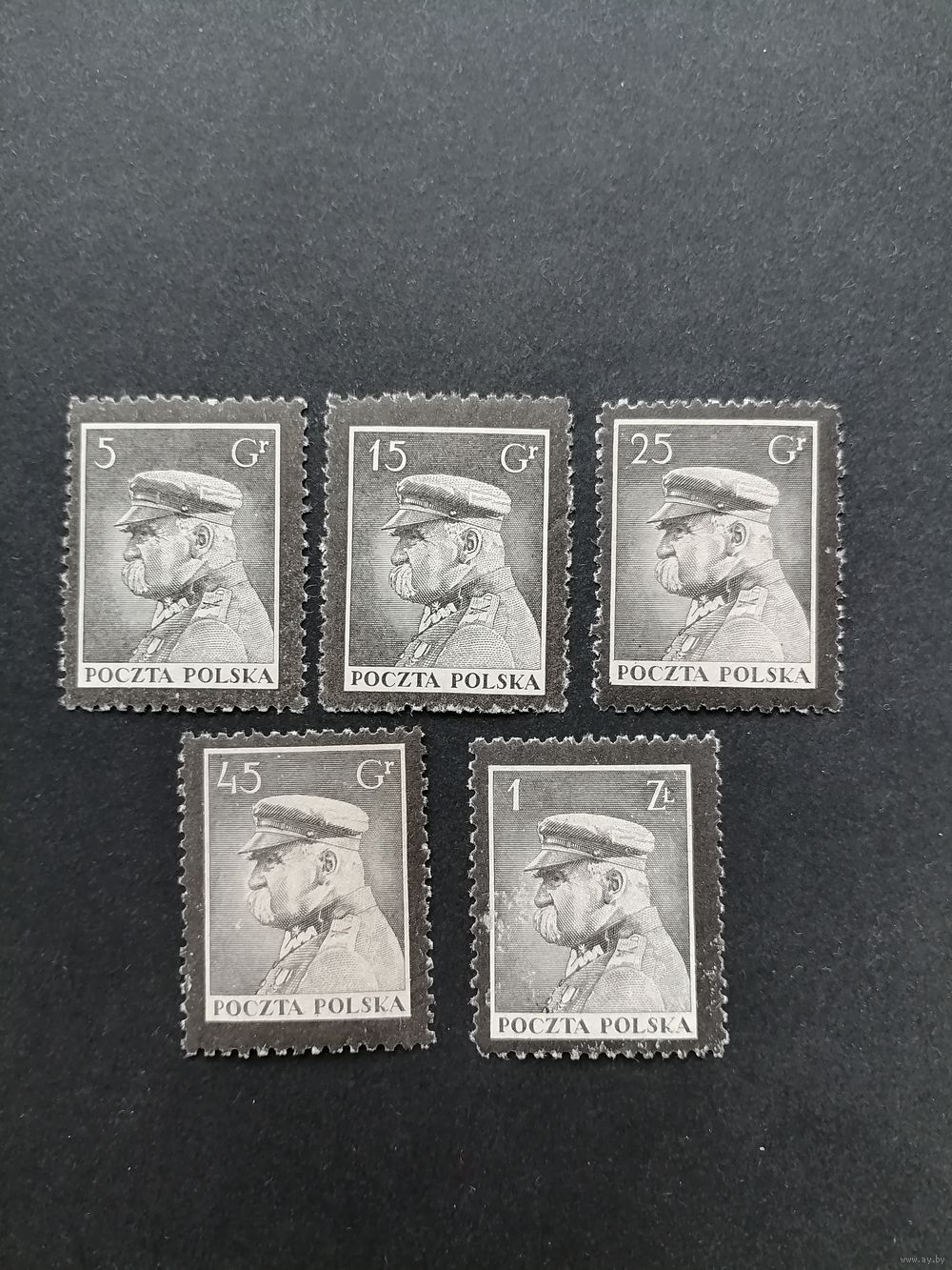 Польша 1935 Полная серия марок "Траурный выпуск по случаю смерти маршала Юзефа Пилсудского" (чистые* на двух первых марках сзади следы от альбома) Mi.294-298 каталог 30.00 евро