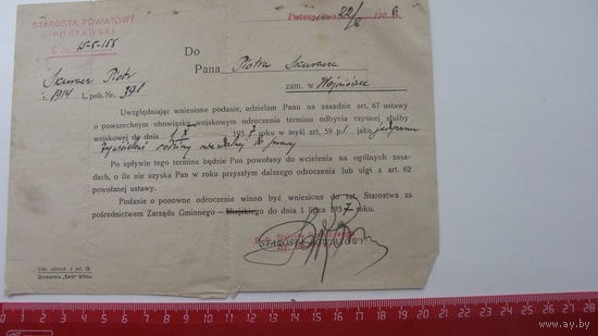 Польша 1936 г. Письмо старосты