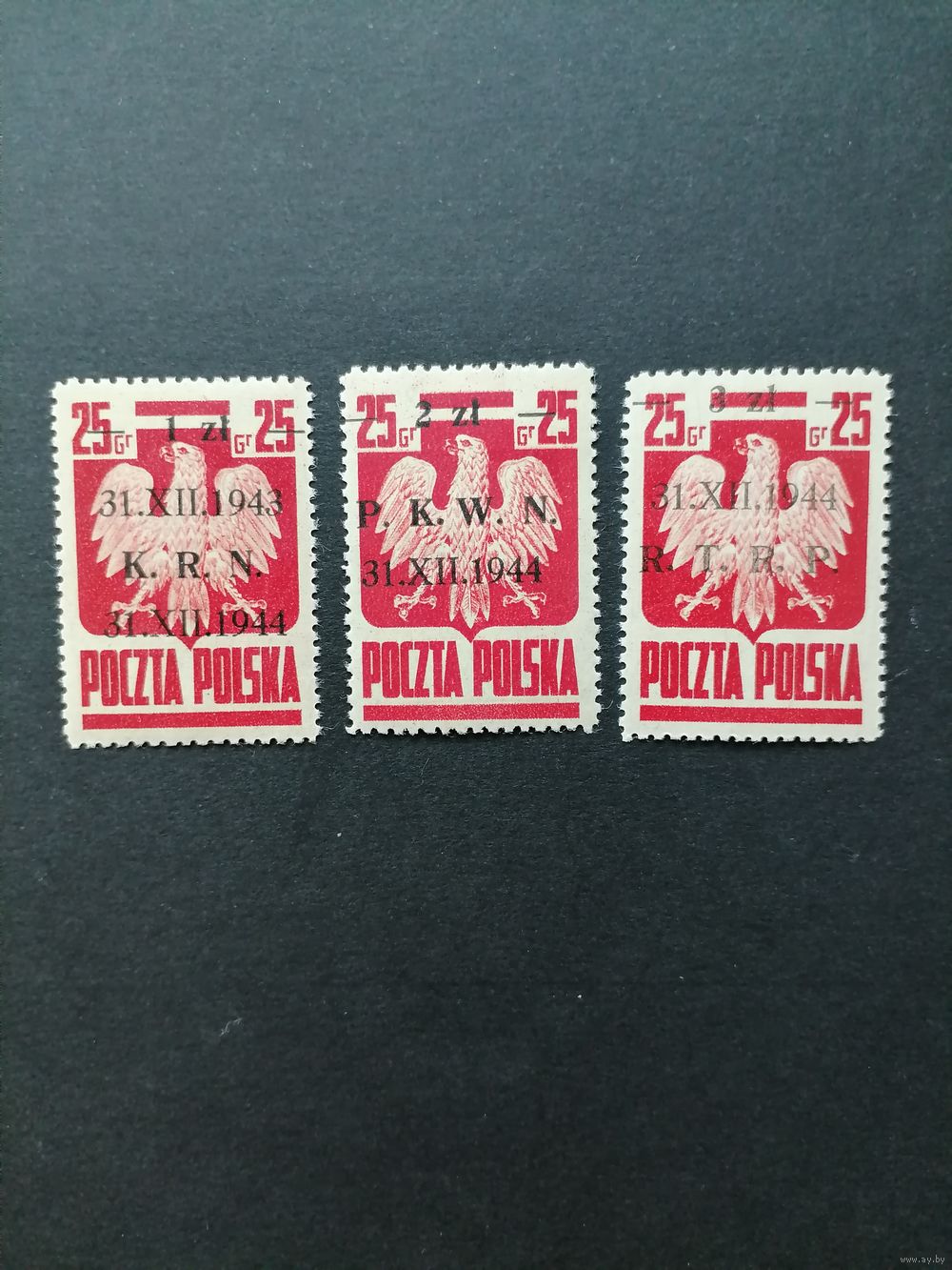 Польша 1944 Полная серия марок c надпечатками на Mi.383 "Преобразование национального совета в народно-освободительное временное правительство" (чистые*) Mi.386-388 каталог 10.00 евро