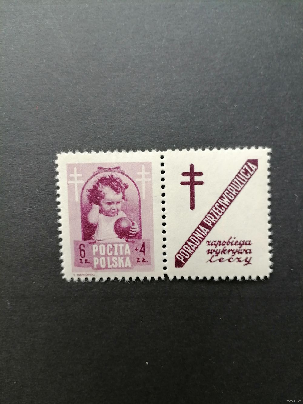 Польша 1948 Марка с купоном из серии "Борьба с туберкулезом" (чистые* след от наклейки) Mi.513 Zf каталог 6.25 евро