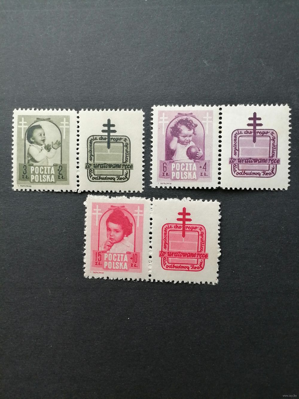 Польша 1948 Неполная серия марок с купонами "Борьба с туберкулезом" (чистые**) Mi.511 Zf, 513 Zf-514 Zf каталог 17.50 евро