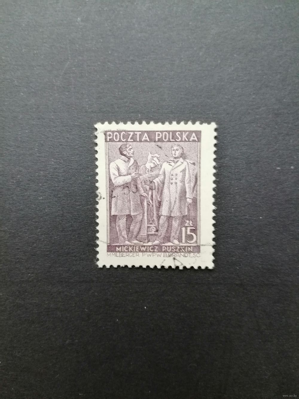 Польша 1949 Марка "Месяц польско-советской дружбы" (гашение без клея, след от наклейки) Mi.543 каталог 7.50 евро