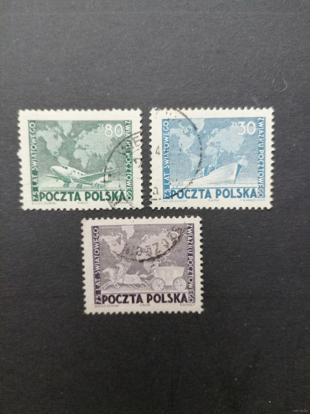 Польша 1949 Полная серия марок "75 лет Всемирному почтовому союзу (UPU)" (гашение без клея и без наклеек) Mi.530-532 каталог 12.00 евро
