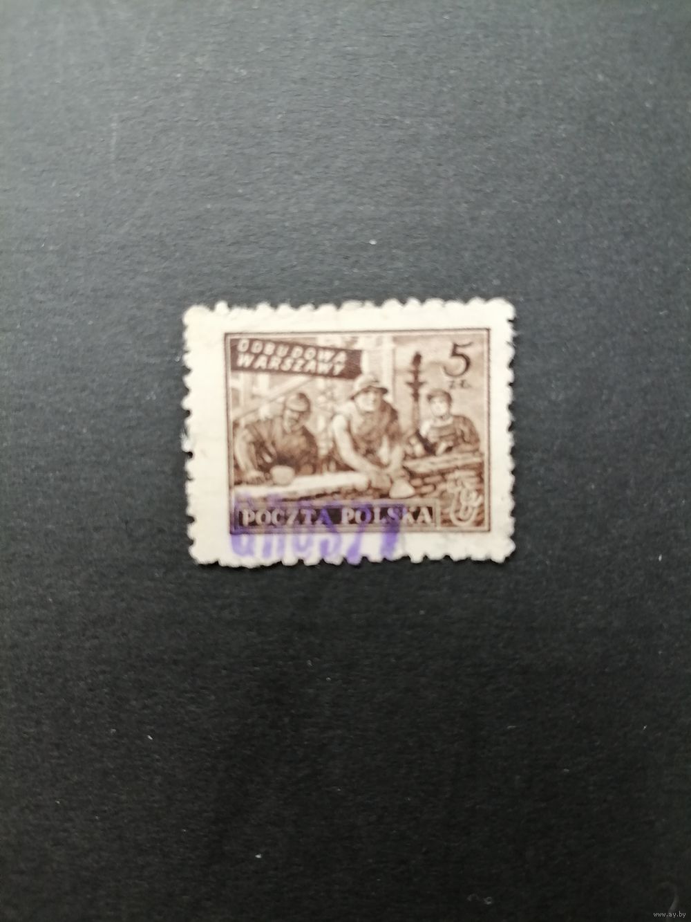 Польша 1950 Марка с надпечаткой "GROSZY" 1950 года Mi.556 "Работы по восстановлению Варшавы" (гашение без клея) Mi.663 каталог 3.00 евро