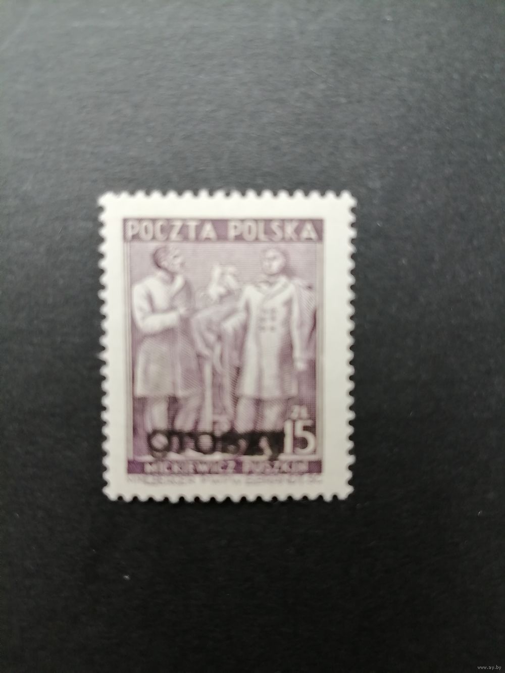 Польша 1950 Марка с надпечаткой "GROSZY" на марке 1949 года Mi.543 "Месяц польско-советской дружбы" (чистая с клеем след наклейки) Mi.646 каталог 11.00 евро