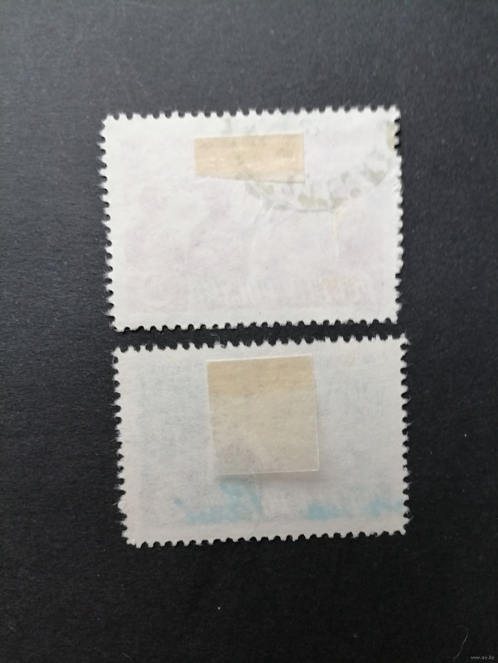 Польша 1950 Неполная серия марок с надпечаткой "GROSZY" на марках 1949 года Mi.527-528 "Конгресс профсоюзов Польши" (гашение без клея следы наклеек) Mi.630-631 каталог 14.00 евро