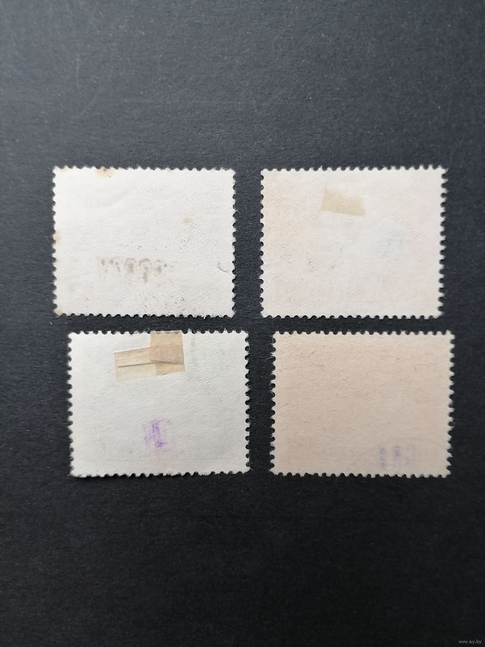 Польша 1950 Полная серия марок с надпечаткой "GROSZY" на марках 1949 года Mi.539-542 "Объединительный съезд крестьянского движения" (гашение без клея, есть наклейки) Mi.642-645 каталог 20.00 евро