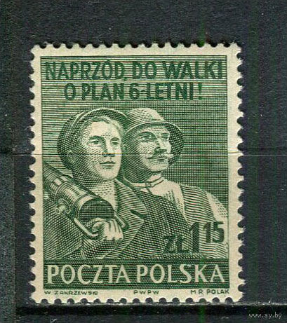 Польша - 1951 - Шестилетний план реконструкции. Рабочие 1,15Zt - [Mi.682] - 1 марка. MNH. (Лот 29HQ)-TG3P1