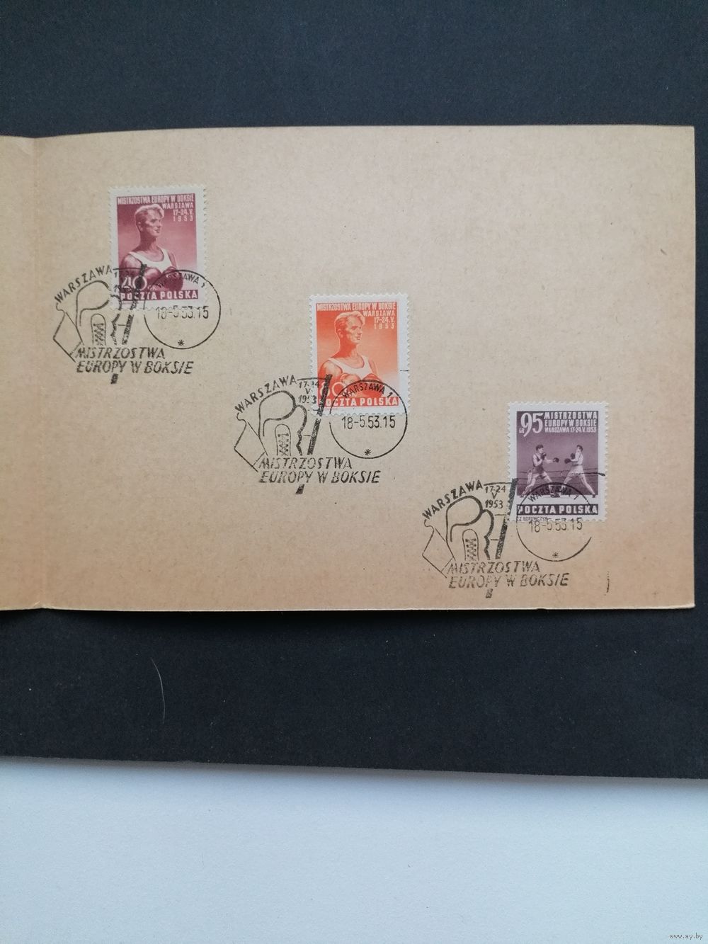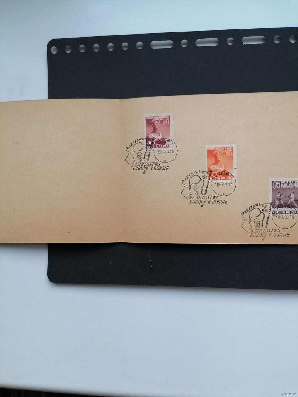 Польша 1953 Буклет с полной серией марок "Чемпионат Европы по боксу в Варшаве" (спецгашение) Mi.802-804