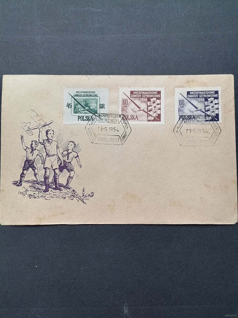 Польша 1954 Два КПД с полной серией марок "Международный чемпионат по планерному спорту" (спецгашение) марки Mi.851-854 каталог 11.00 евро