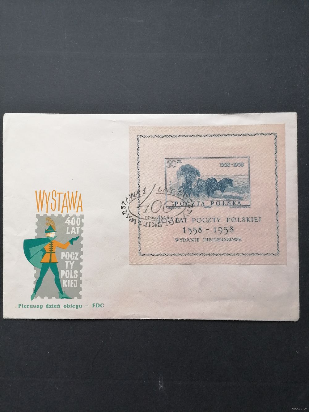 Польша 1958 КПД с блоком Mi.22 "400 лет почте Польши" (спецгашение) марка Mi.1085 каталог 50.00 евро