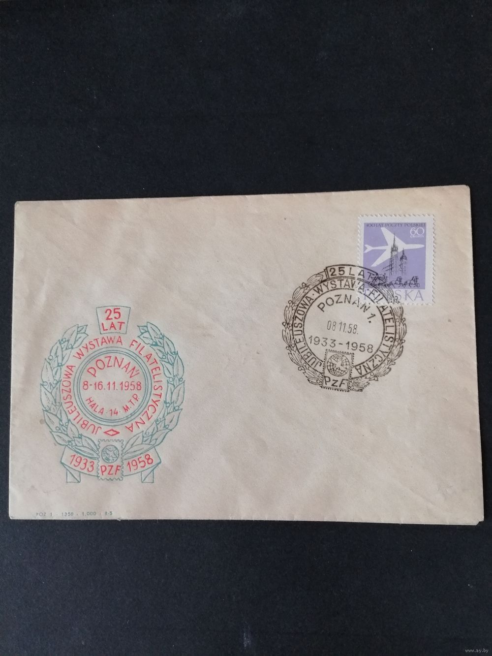 Польша 1958 КПД с маркой из серии "400 лет почте Польши" (спецгашение посвящено 25-летию проведения филателистической выставки (Познань) Mi.1064
