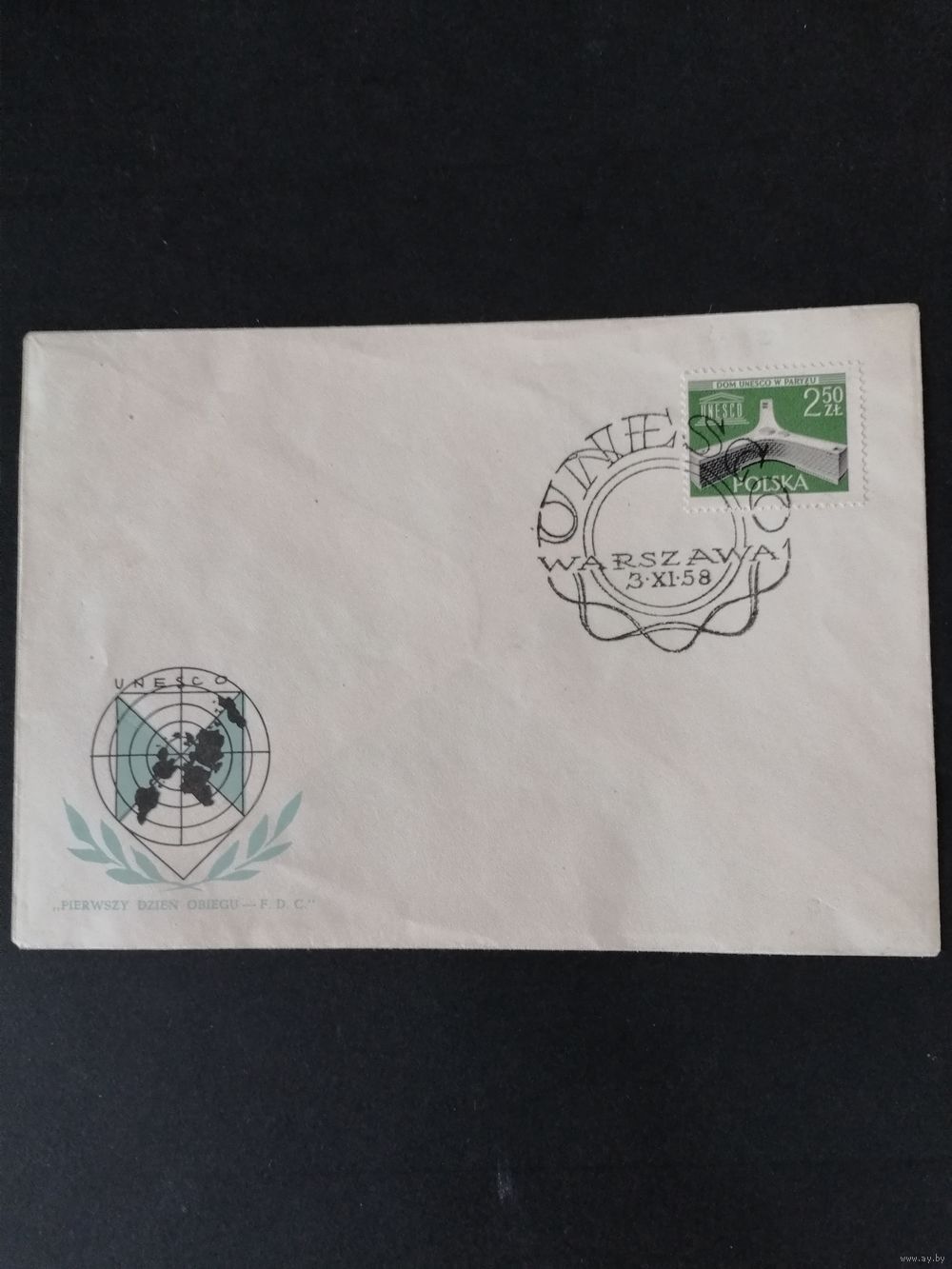 Польша 1958 КПД с маркой "Открытие нового филиала UNESCO в Париже" (спецгашение) Mi.1075 каталог 1.20 евро