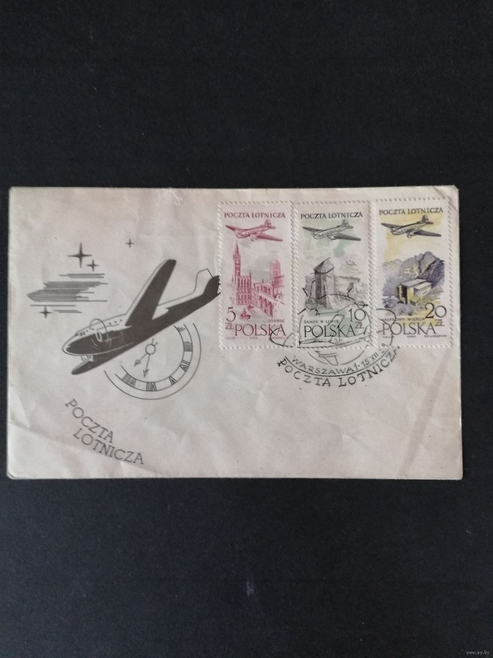 Польша 1958 КПД с неполной серией марок "Авиапочта. Самолет над городами и ландшафтами Польши" (спецгашение) Mi.1080-1082 каталог 8.50 евро