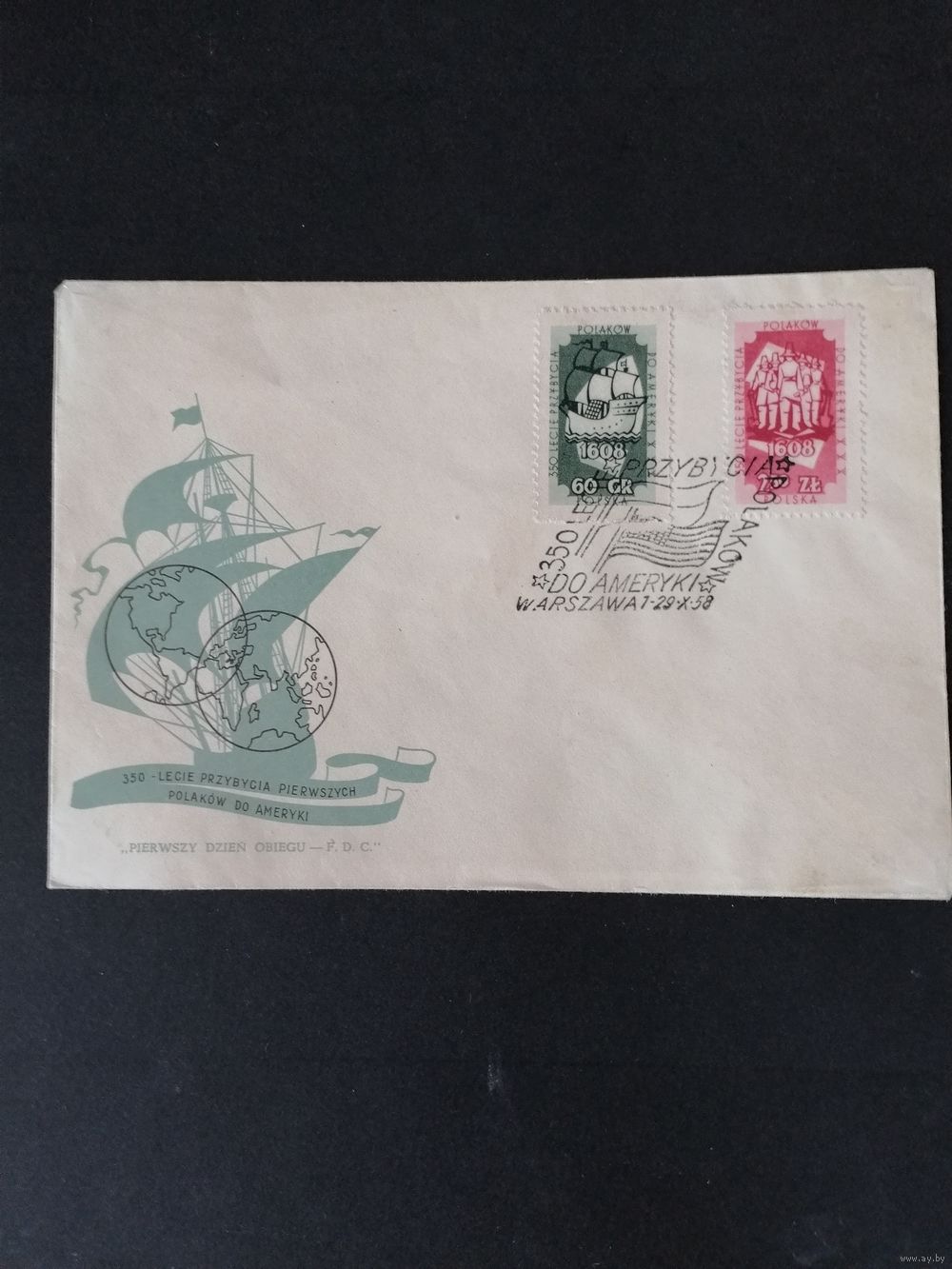 Польша 1958 КПД с полной серией марок "350 лет со дня появления первых польских эмигрантов в Америке" (спецгашение) Mi.1073-1074 каталог 1.00 евро