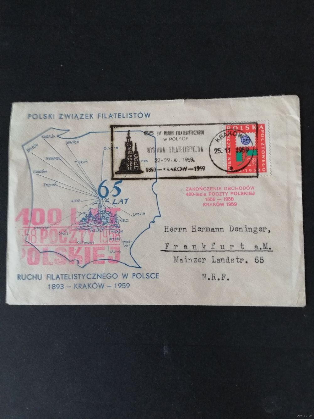 Польша 1959 Конверт посвященный 65-летию движения филателистов в Польше с маркой из серии "День почтовой марки" (спецгашение) Mi.1126