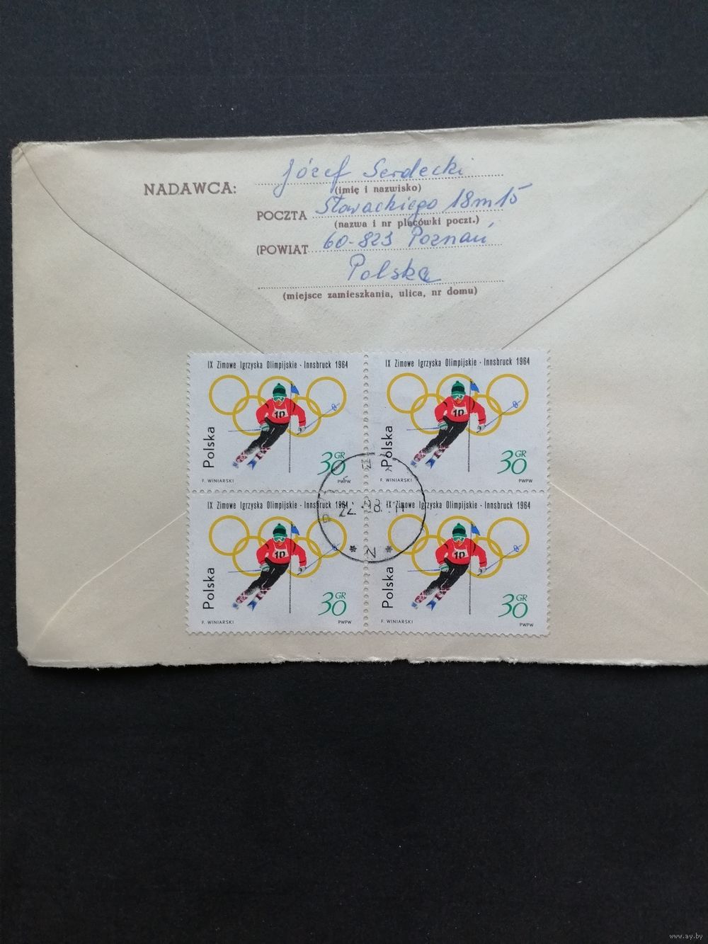 Польша 1959 Конверт с полной серией марок "Спортивные дисциплины" (простое гашение) Mi.1086-1089 каталог 2.60 евро