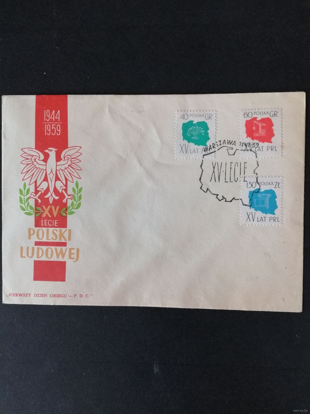 Польша 1959 КПД с полной серией марок "15 лет Польской Народной Республике" (спецгашение) Mi.1108-1110 каталог 1.00 евро