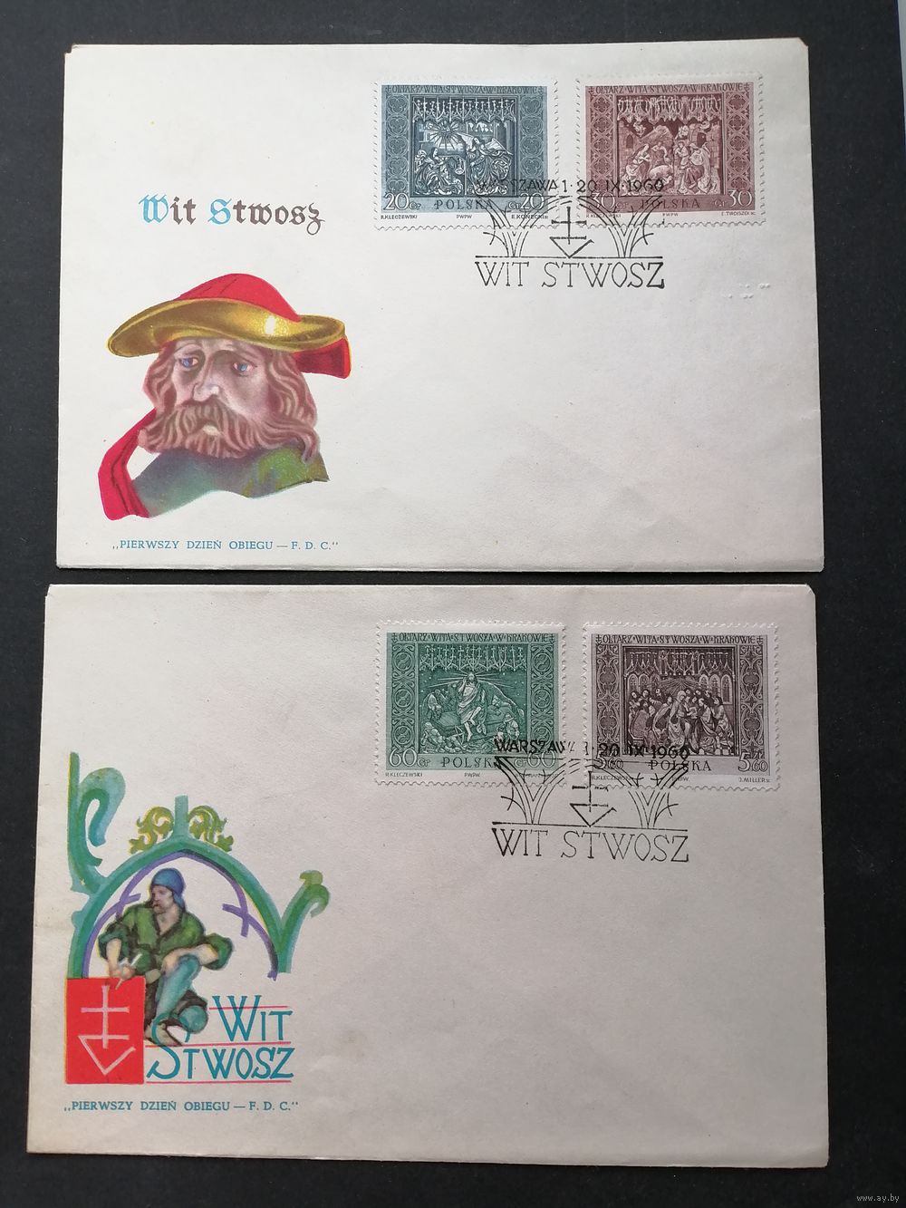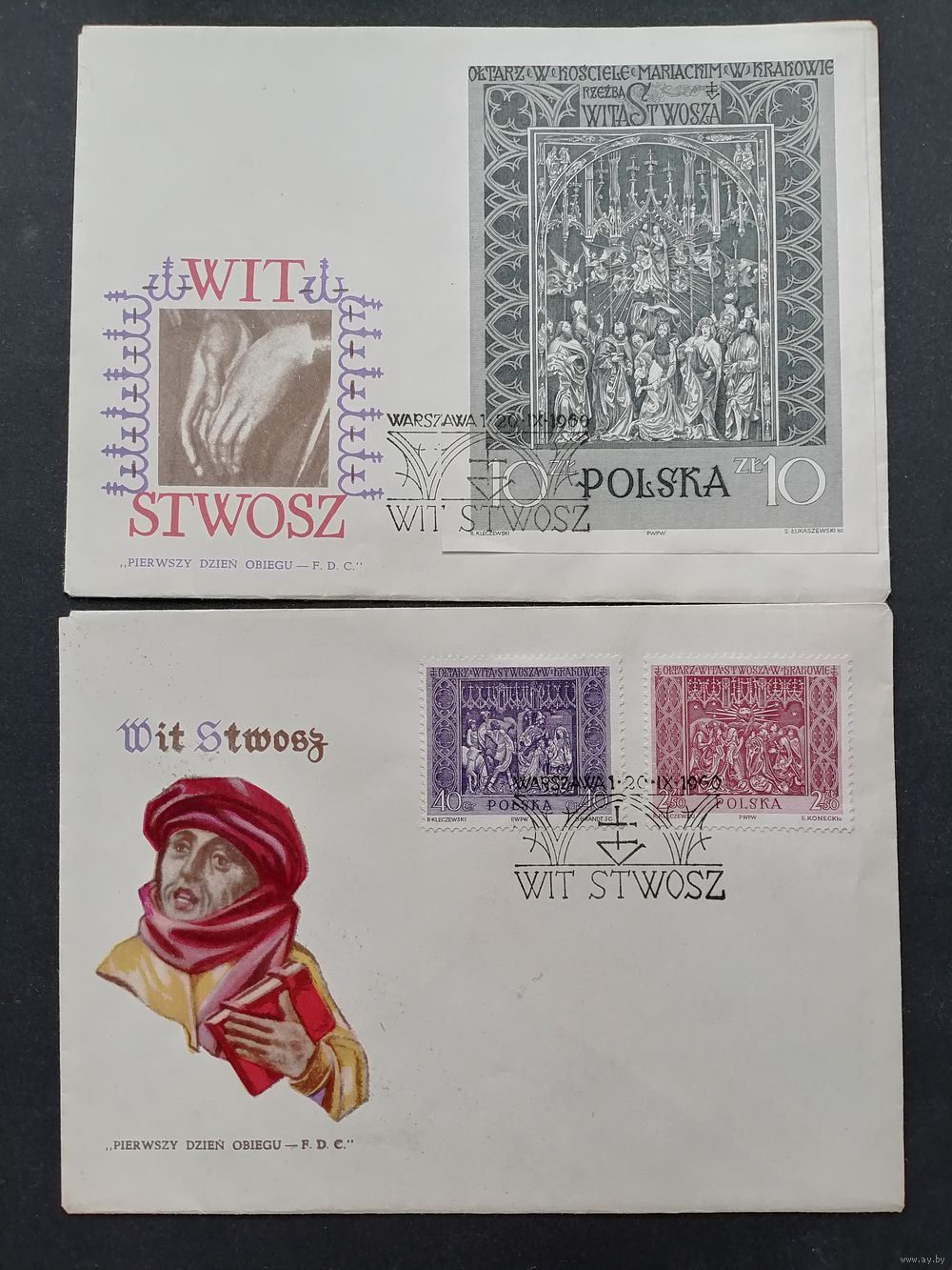 Польша 1960 Четыре КПД с блок Mi.23 и полной серией марок "Средняя часть алтаря "Успение пресвятой Богородицы" костела Успения пресвятой Богородицы в Кракове" (спецгашение) Мi.1179-1184 кат 30.00 евро