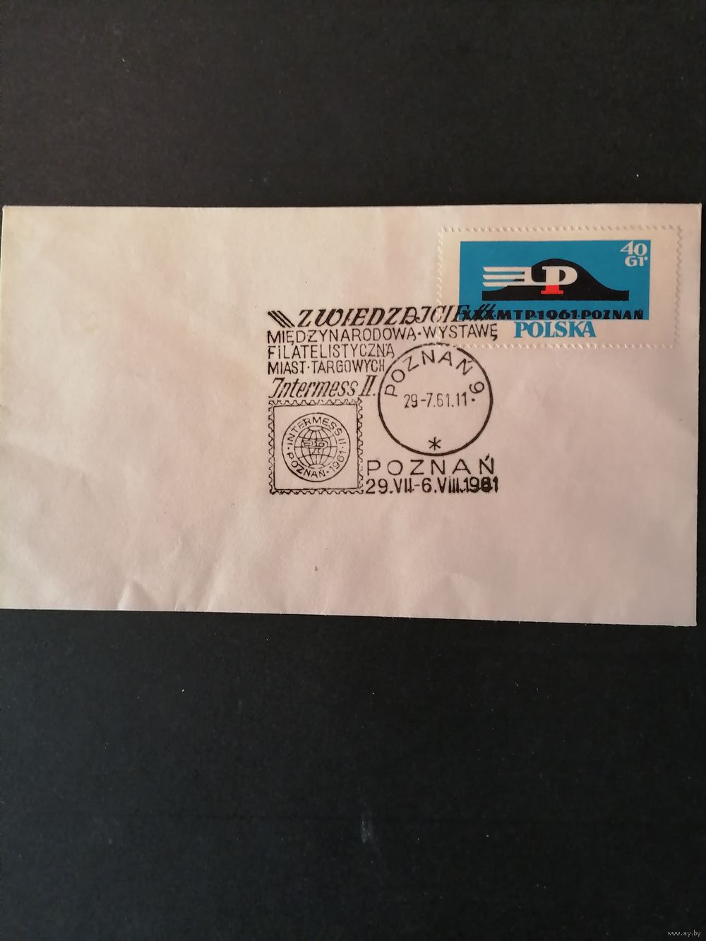Польша 1961 Конверт с маркой из серии "XXX Познаньская торговая ярмарка" (спецгашение посвящено филателистической выставке городов проведения торговых ярмарок INTERMESS II) Мi.1230