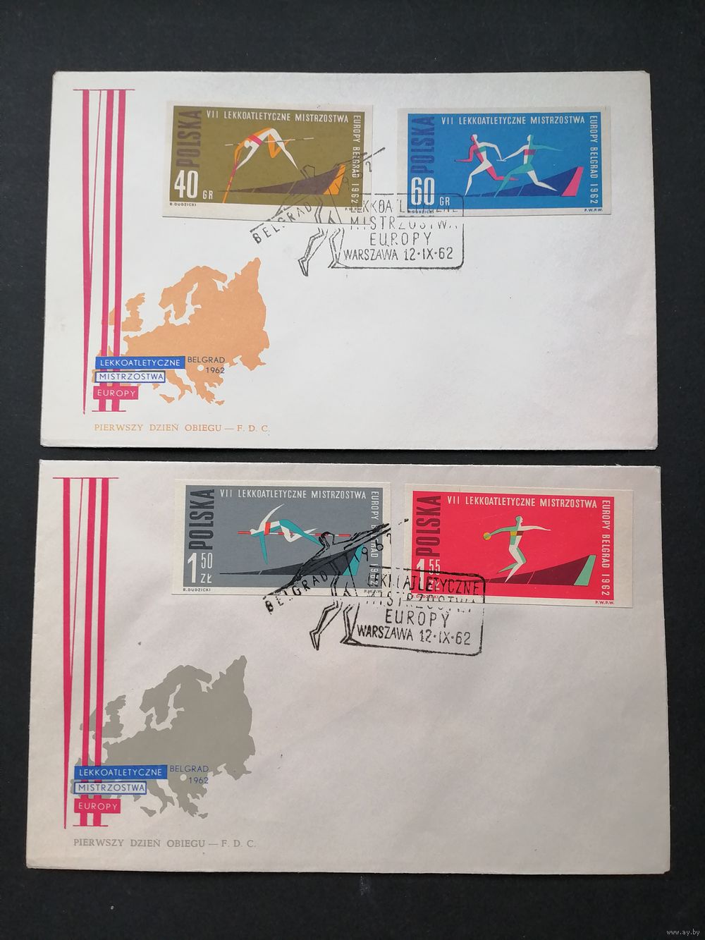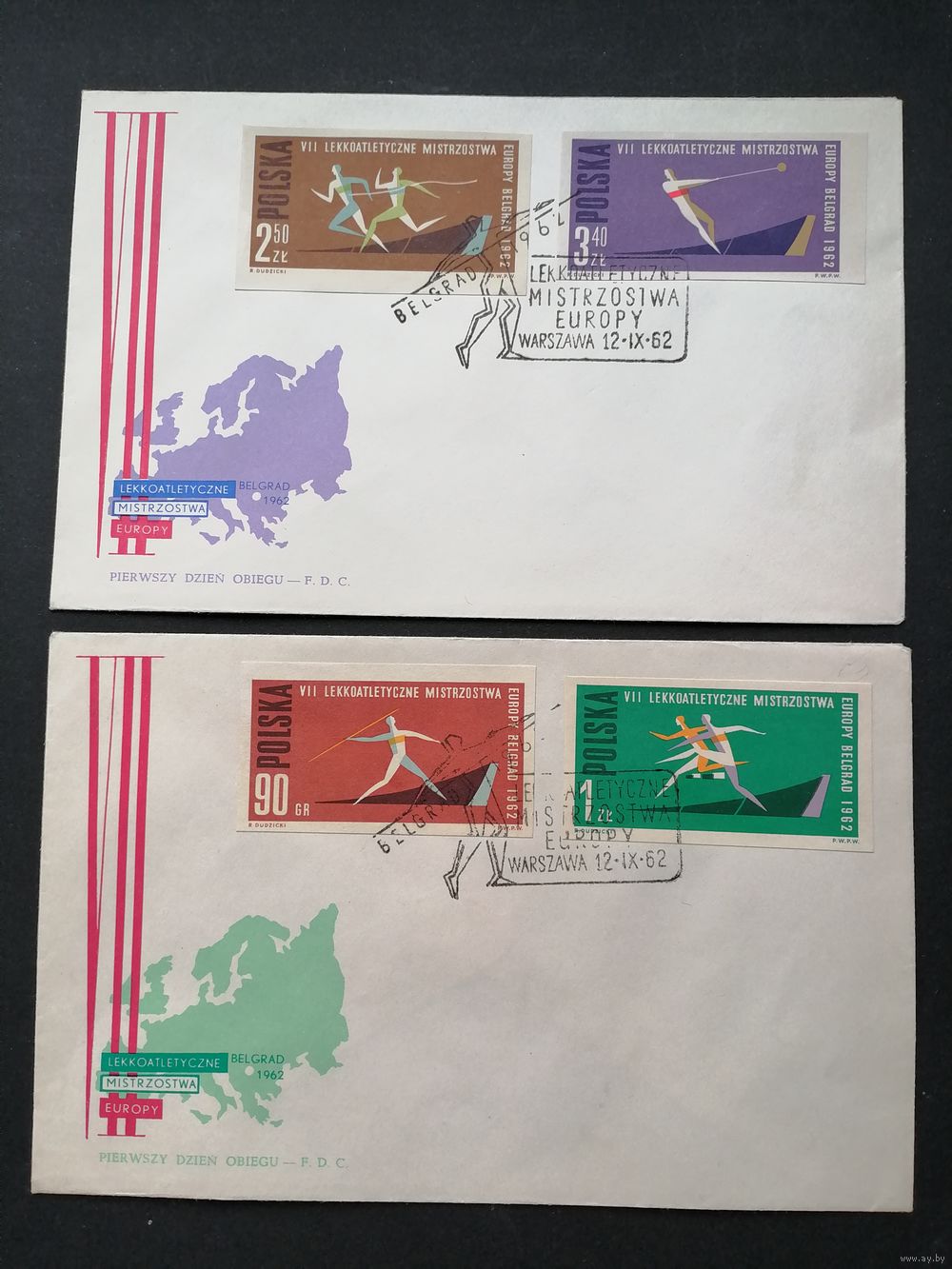 Польша 1962 Четыре КПД с полной серией марок "Чемпионат Европы по легкой атлетике в Белграде" (спецгашение) Mi.1338В-1345В каталог 6.50 евро