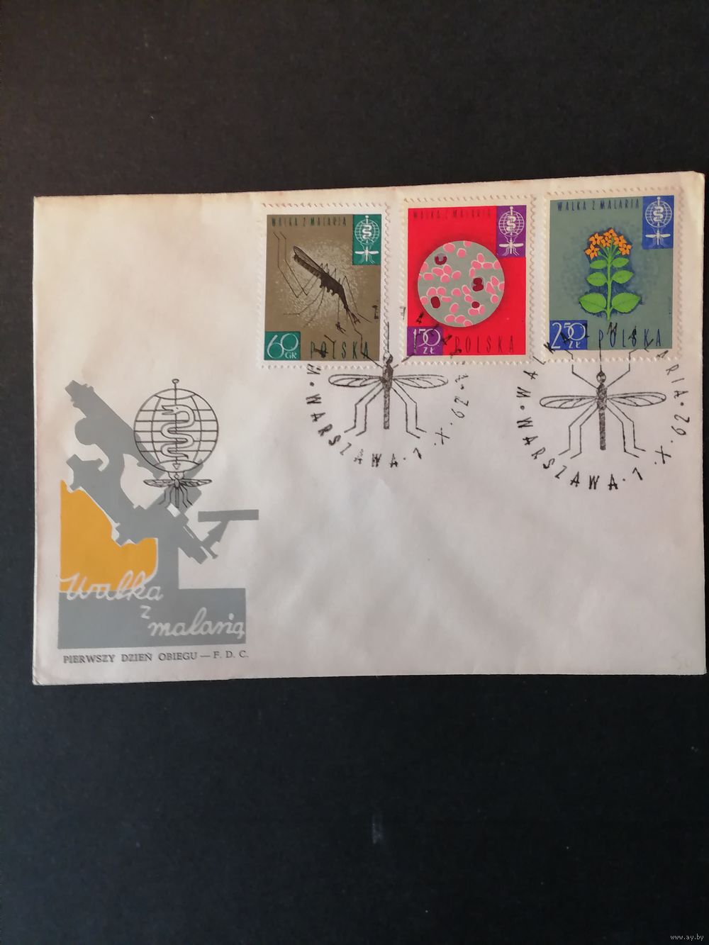 Польша 1962 КПД с полной серией марок "Международная борьба против малярии" (спецгашение) Mi.1346-1348 каталог 2.50 евро