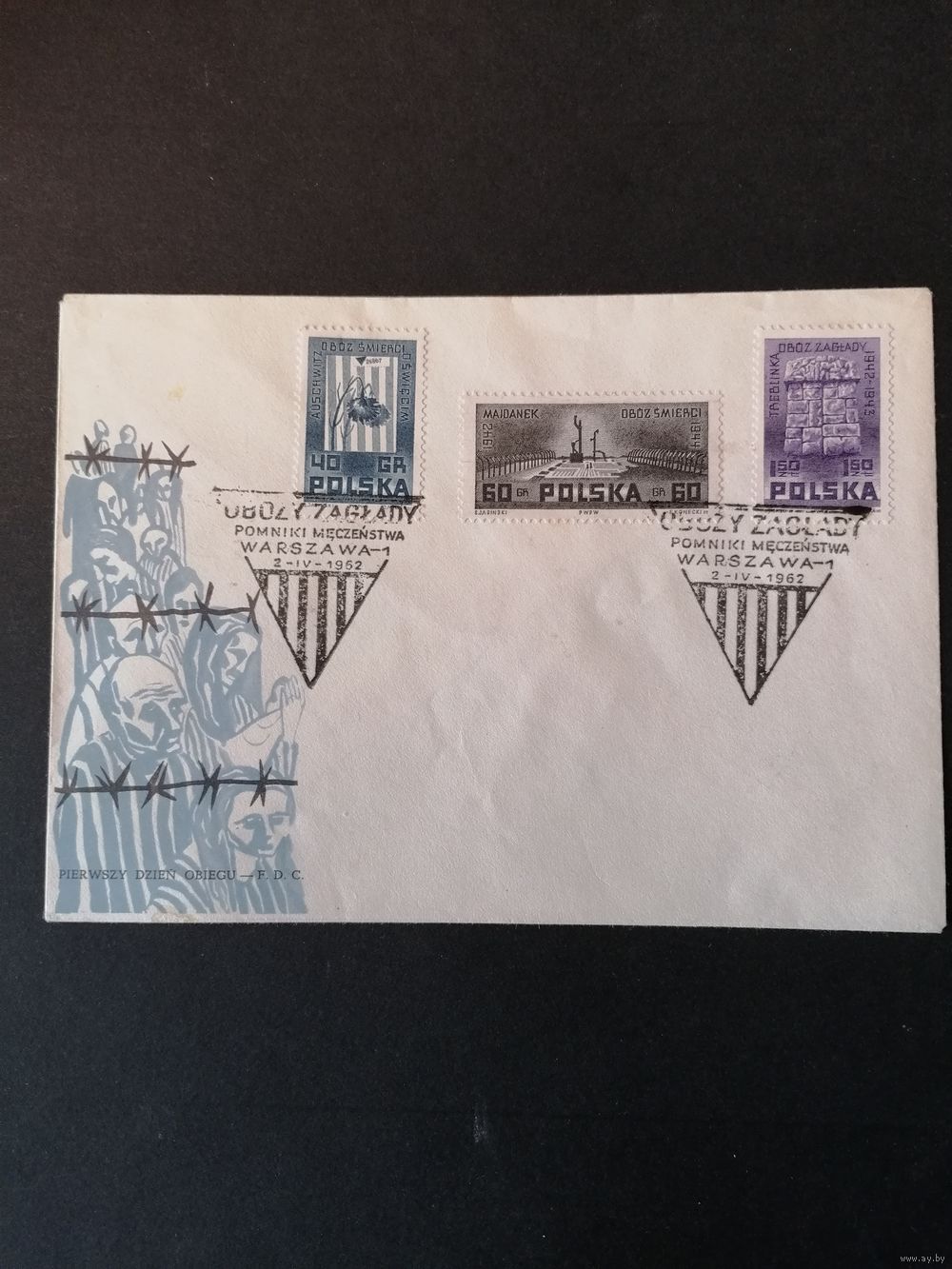 Польша 1962 КПД с полной серией марок "Памятники борьбы и мученичества" (спецгашение) Mi.1303-1305 каталог 1.50 евро