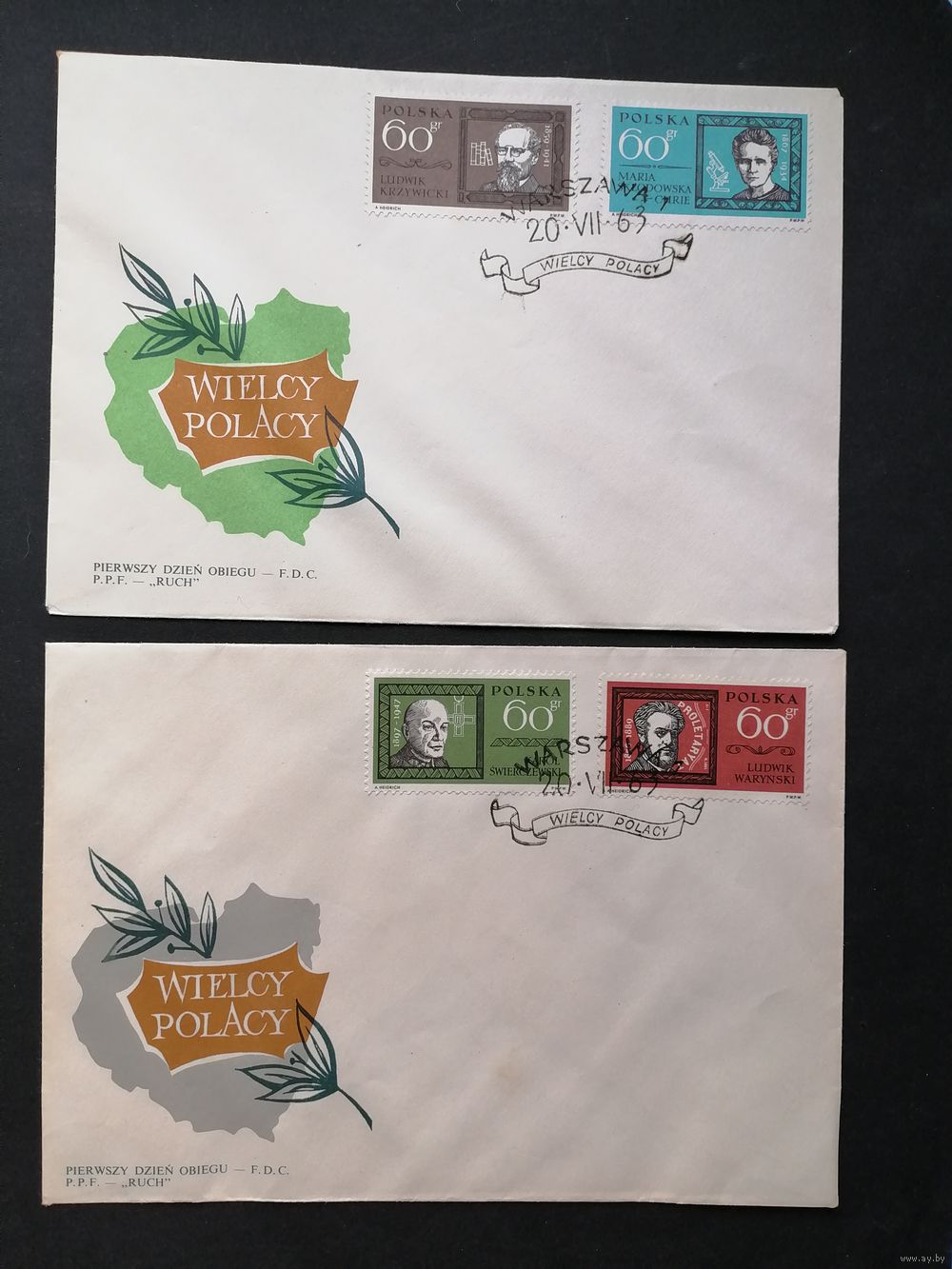 Польша 1963 Два КПД с полной серией марок "Великие поляки" (спецгашение) Mi.1411-1414 каталог 1.00 евро